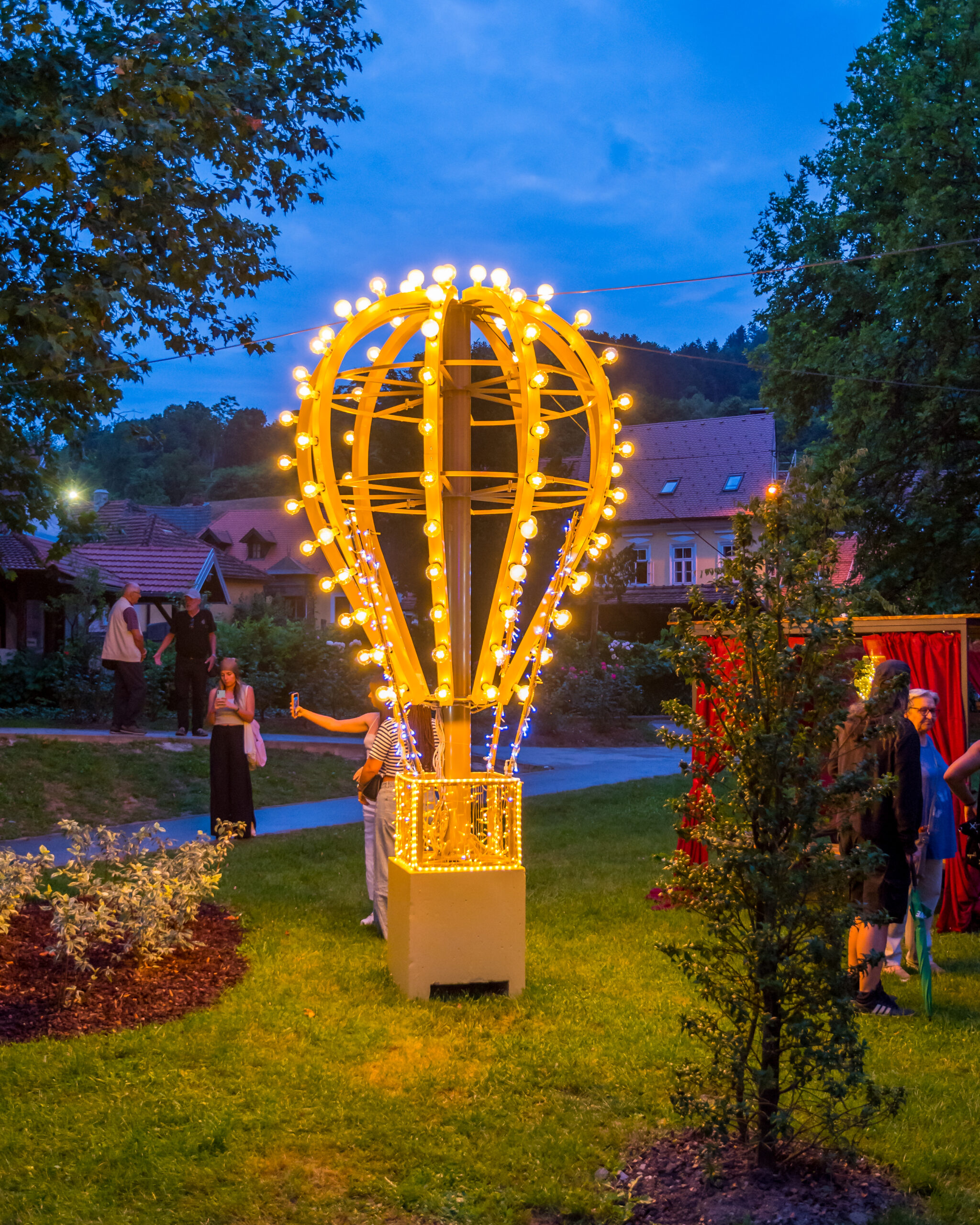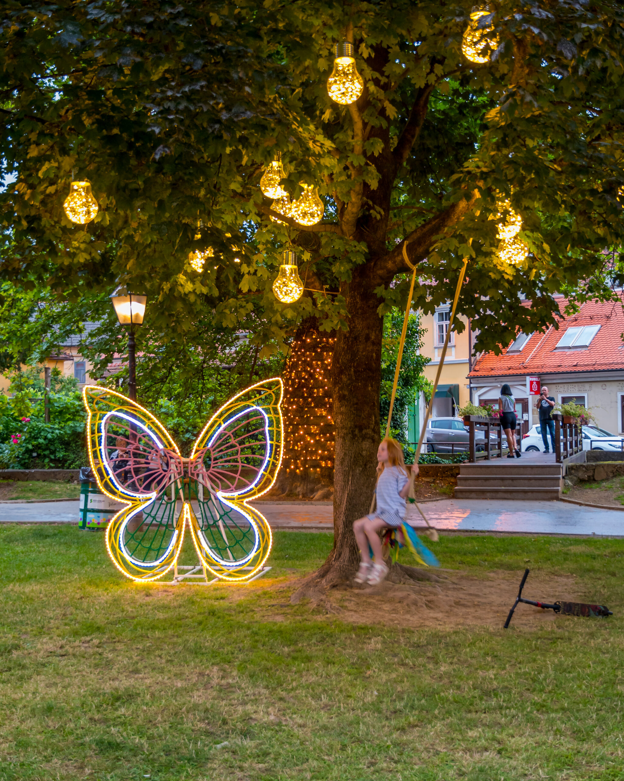 Summer in Samobor is a festive event that takes place every summer in a beautiful park. Beautiful decorations in Bioprint, biodegradable and recyclable material, are installed to create festive and family atmospheres. Illuminated garlands, colorful selfie spots in the shape of butterflies and illuminated hot air balloons take their place and amaze passers-by.