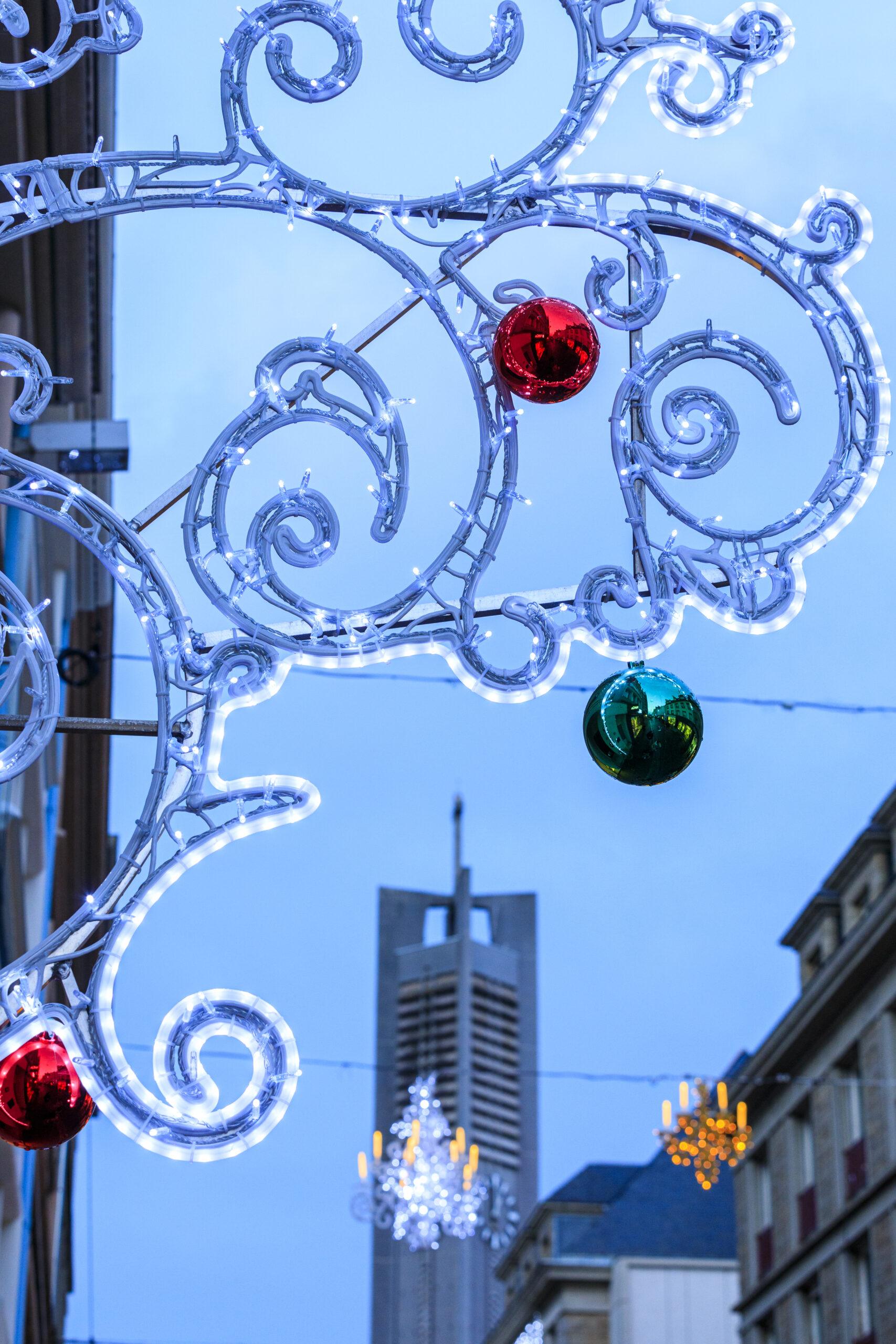 Lorient shines brightly with stunning baroque-inspired decorations, featuring elegant silhouettes of majestic trees and sparkling chandeliers. These luminous creations pay homage to the city’s rich history with the East India Company, blending grandeur with theatrical flair. The intricate patterns and radiant displays transform the avenues into a poetic celebration of Lorient’s heritage. Experience the timeless charm of this vibrant tribute, where history and artistry come to life.