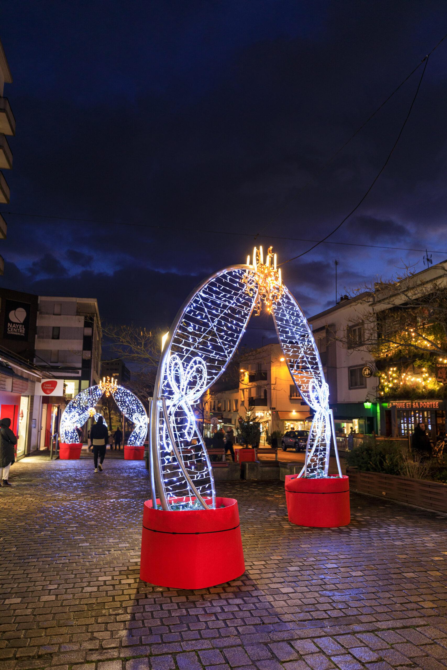 Lorient is adorned with sumptuous silhouettes of baroque trees and sparkling chandeliers in tribute to the city’s close ties with the East India Company. The choice of lines and patterns give the avenues a grandiose and theatrical look.