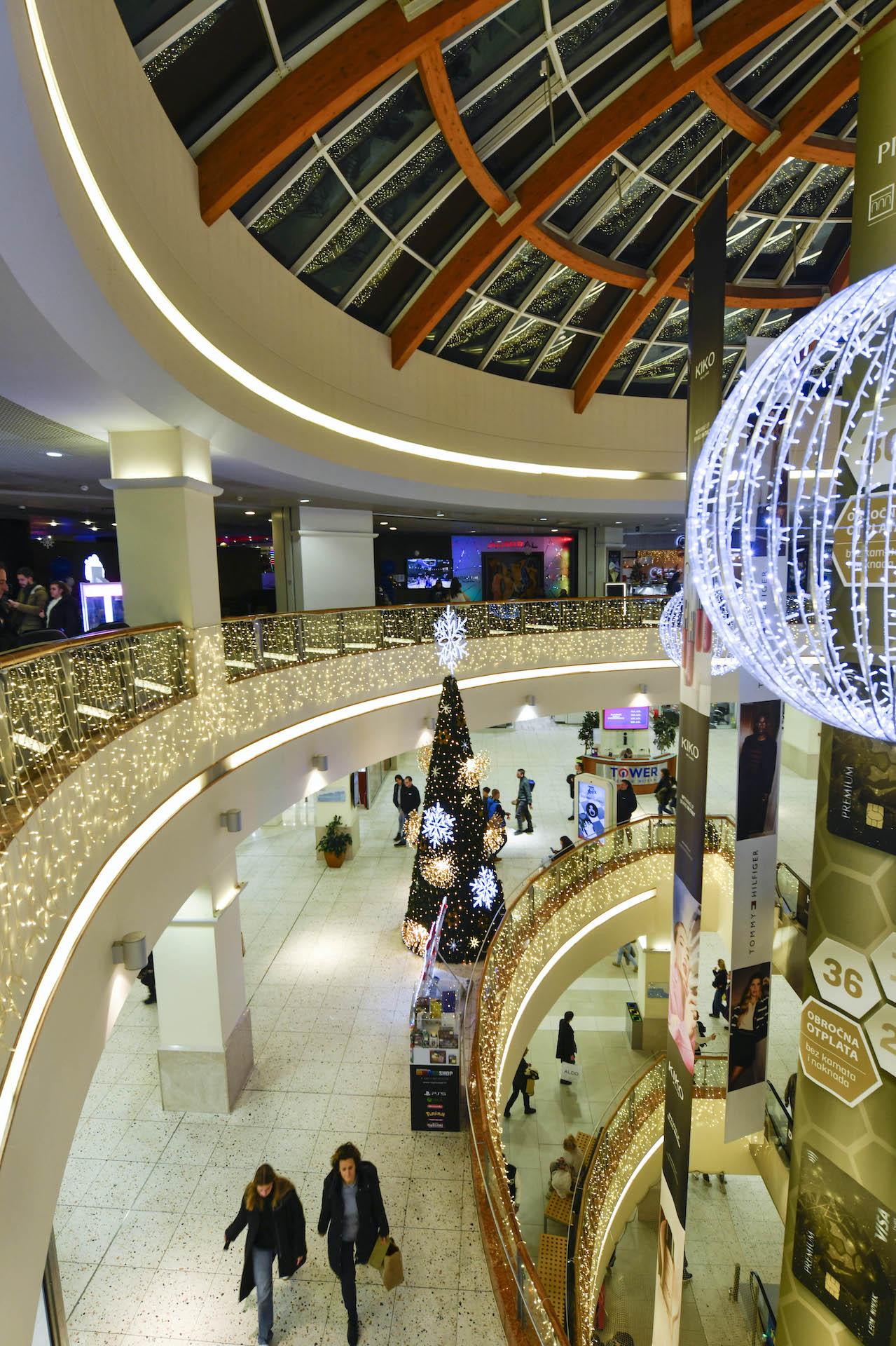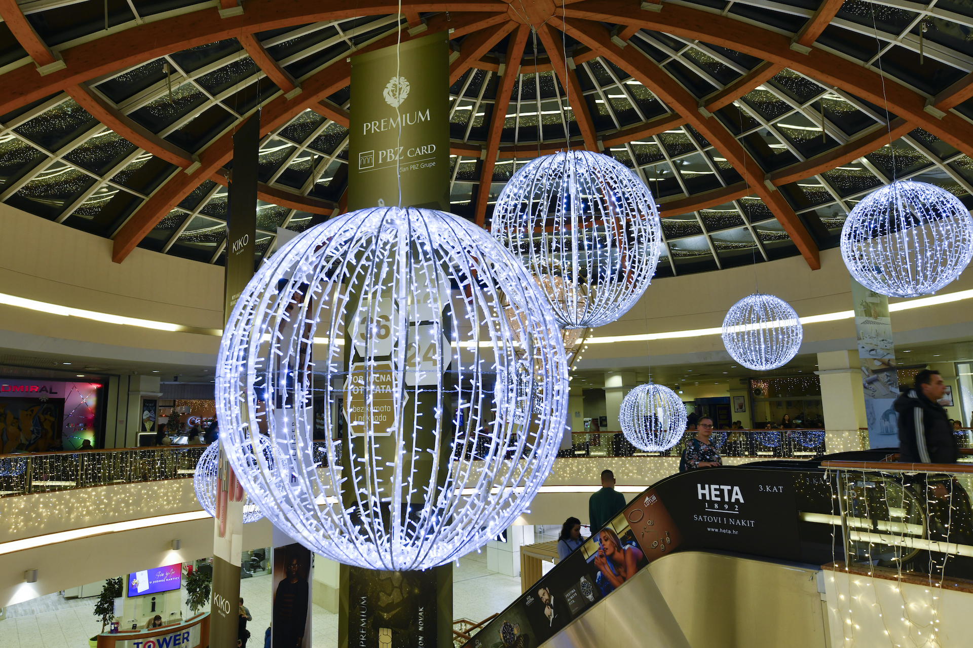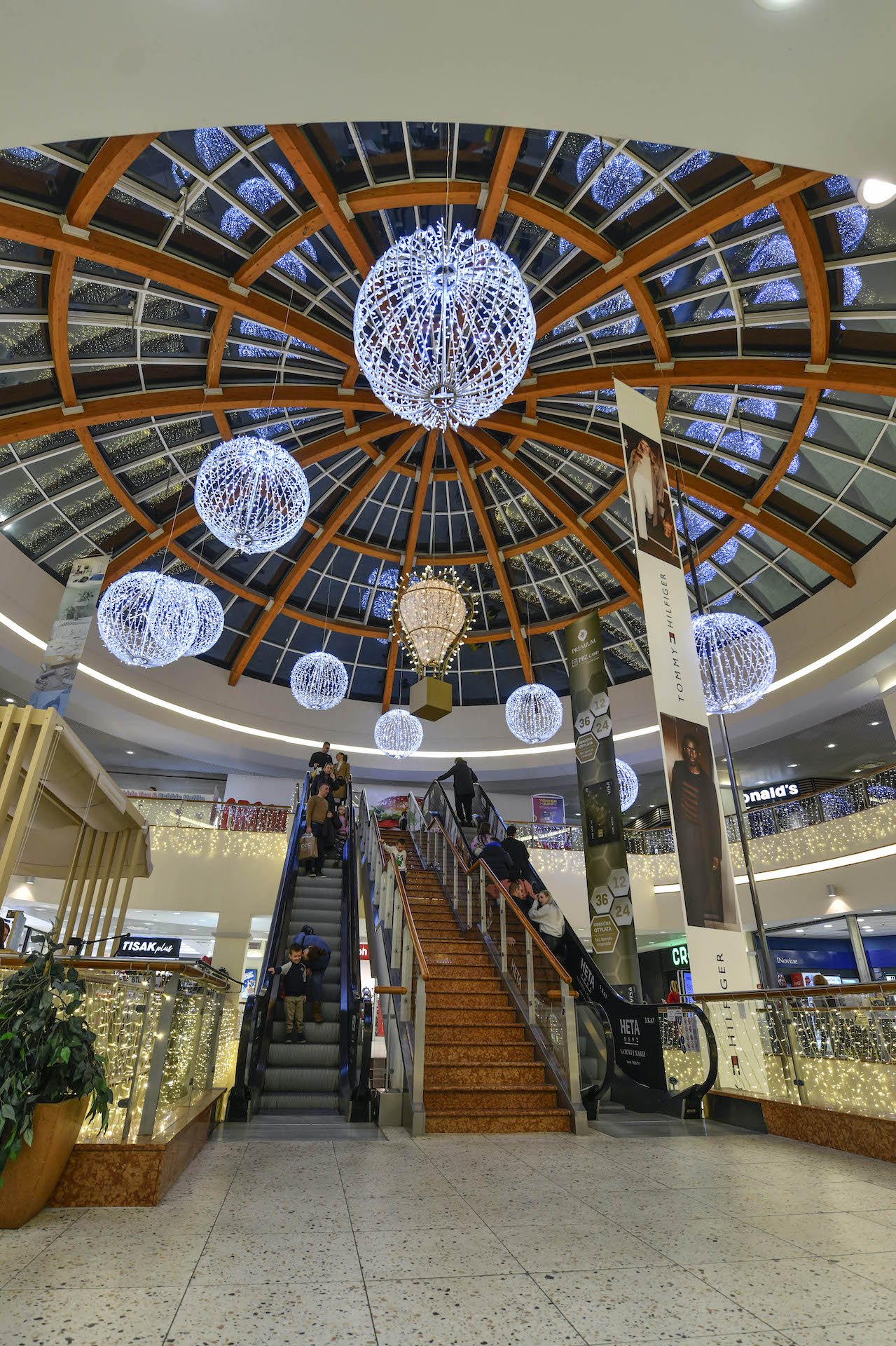 Tower Center Rijeka reflects Rijeka’s specific vibe. Its shopping and entertainment gallery extends to five floors with the recognizable and most beautiful glass dome on the top, which requires bold and elegant decorations, to surprise and intrigue from all the levels. Generous spread of warm white throughout the centre most certainly does its part in creating a festive atmosphere.